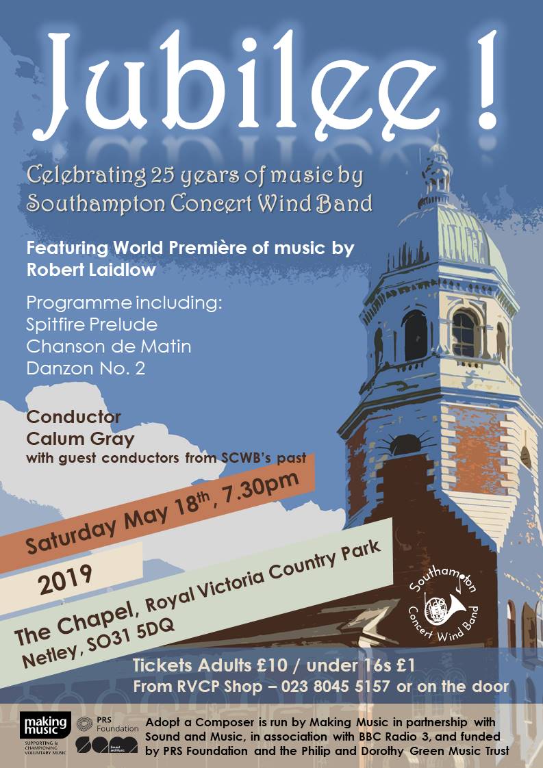 On Saturday 18th May, 2019, SCWB performed a Silver Jubilee concert in The Chapel, Royal Victoria Country Park, Netley, celebrating 25 years of music-making.